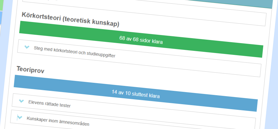 Vi skulle kunna kräva att innan vi rapporterar till trafikverket att kursen är klar så vill vi se att eleven nått de teoretiska målen men vi tror att ni kan ta det ansvaret hemma som elever och målsmän.
